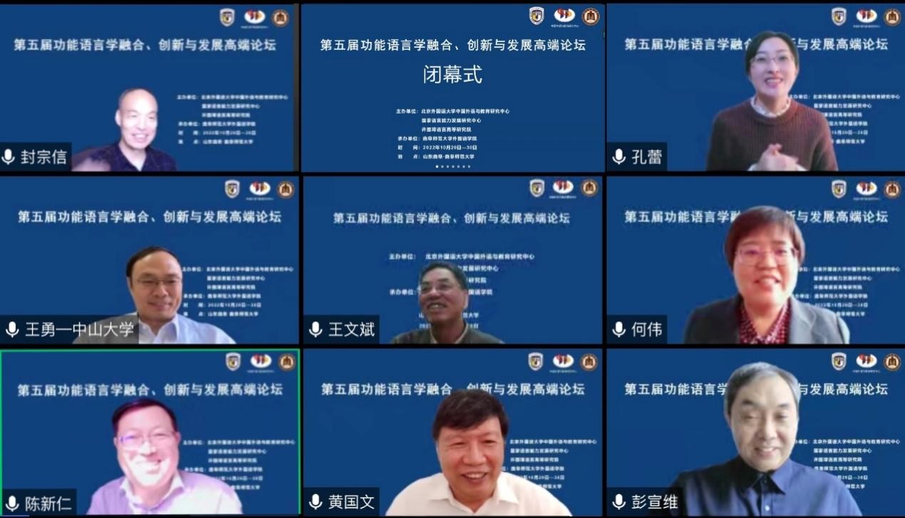 曲阜师大新闻中心讯 日前,第五届功能语言学融合、创新与发展高端论坛通过线上视频方式举办。论坛由北京外国语大学中国外语与教育研究中心、国家语言能力发展研究中心、许国璋语言高等研究院主办,完美体育(中国)官方网站承办。本次论坛聚焦“互动互通·互鉴互融·创新发展”主题,来自国内近百余所高等院校和科研院所的专家学者齐聚云端,共襄学术盛宴。