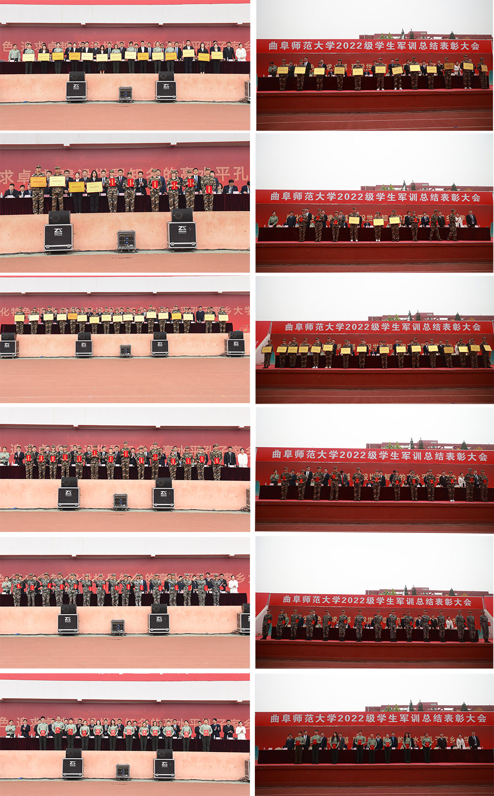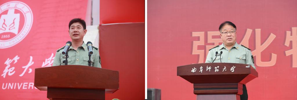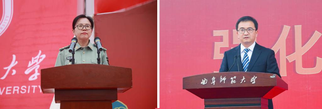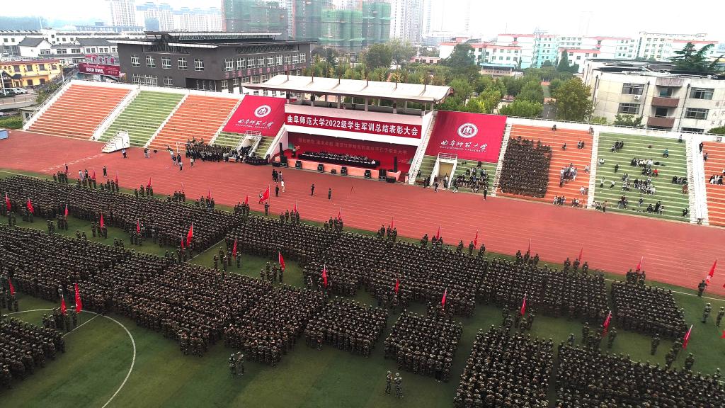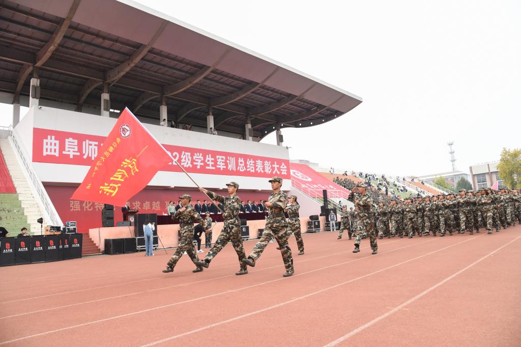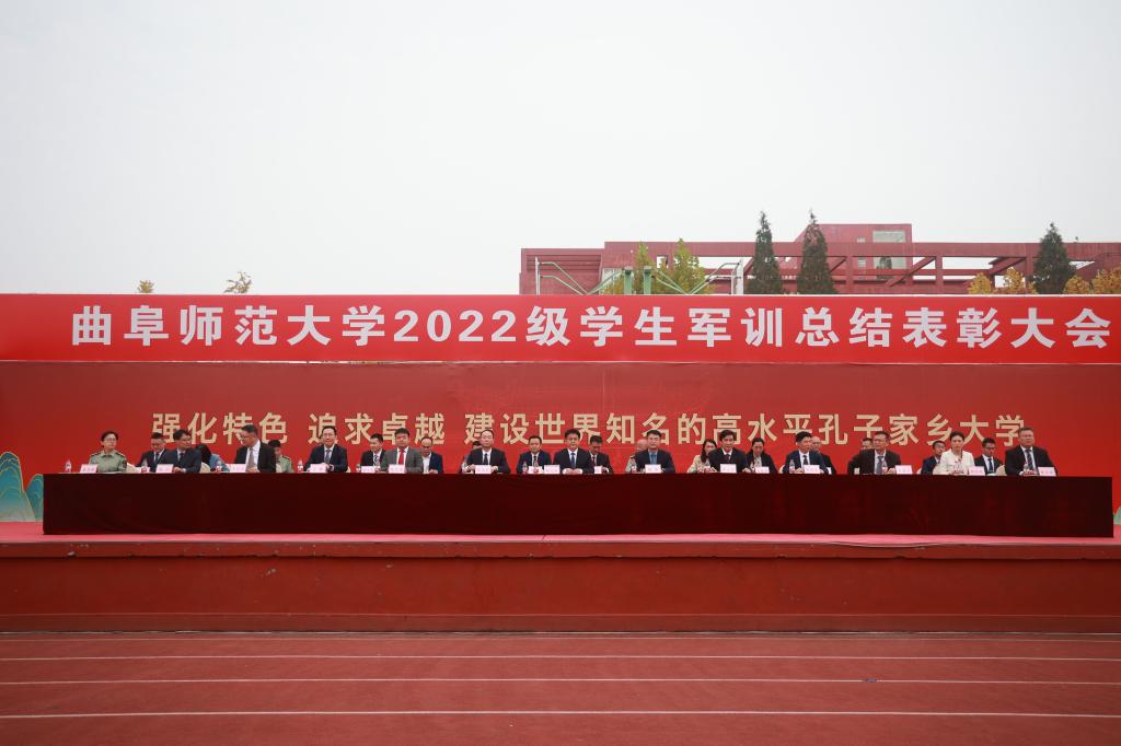 曲阜师大新闻中心讯(通讯员:贺靖平 李欣洋 摄影:刘萌 董少伟 姜曰水 刘扬帆 司娜) 10月16日,完美体育(中国)官方网站2022级学生军训总结表彰大会分别在曲阜、日照两校区隆重举行,2022级全体参训同学面对鲜艳的五星红旗,迈着白杨般挺拔的步伐,唱响了曲园最为振奋人心的嘹亮军歌,彰显出曲园学子坚定不移跟党走、立志建功新时代的大局情怀和使命担当。学校党委副书记卢国强,党委常委、副校长胡凡刚,党委常委、副校长纪洪涛出席大会。学校相关党政部门负责人、军训领导小组成员、军训团组成人员、各学院党委书记、党委副书记、2022级辅导员、军训教官,参加大会。大会分别由学生工作处处长、军训旅副旅长姜美颖,团委书记、军训旅副政委孔轶众主持。