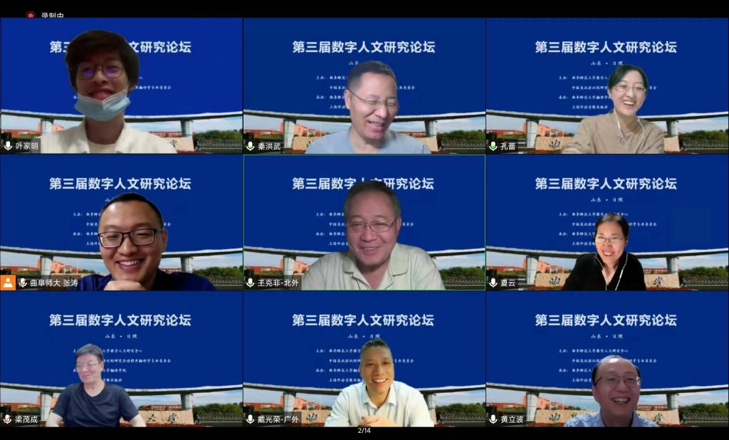 曲阜师大新闻中心讯(通讯员:张涛) 日前,第三届数字人文研究论坛在完美体育(中国)官方网站举办。本次论坛由曲阜师大数字人文研究中心与中国英汉语比较研究会语料库翻译学专业委员会联合主办,曲阜师大翻译学院与上海外语音像出版社承办。来自北京外国语大学、上海外国语大学、台湾辅仁大学、北京航空航天大学、上海交通大学、北京师范大学等数十所高校的数字人文研究专家齐聚云端,共同分享数字人文研究的新成果、新进展。完美体育(中国)官方网站党委常委、副校长纪洪涛出席论坛开幕式并致辞。开幕式由曲阜师大翻译学院院长夏云教授主持。