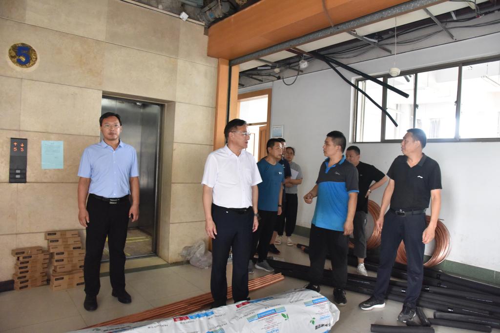 在现场,陈刚对一线施工人员付出表示感谢,详细听取工作人员的介绍,查看施工进度。陈刚强调,要在确保安全施工前提下,严格工作程序,强化过程监督,确保工程质量,优质稳步推进;要加快推进工程进度,倒排工期,按照时间节点,全力以赴,确保圆满完成暑期校园维修改造工作任务。