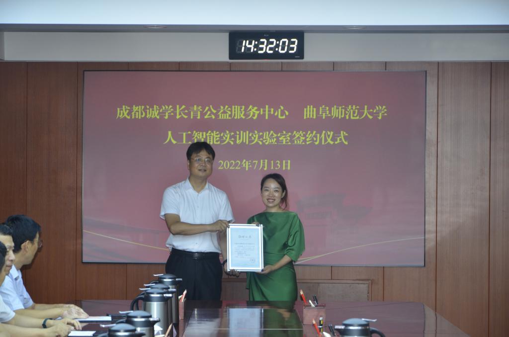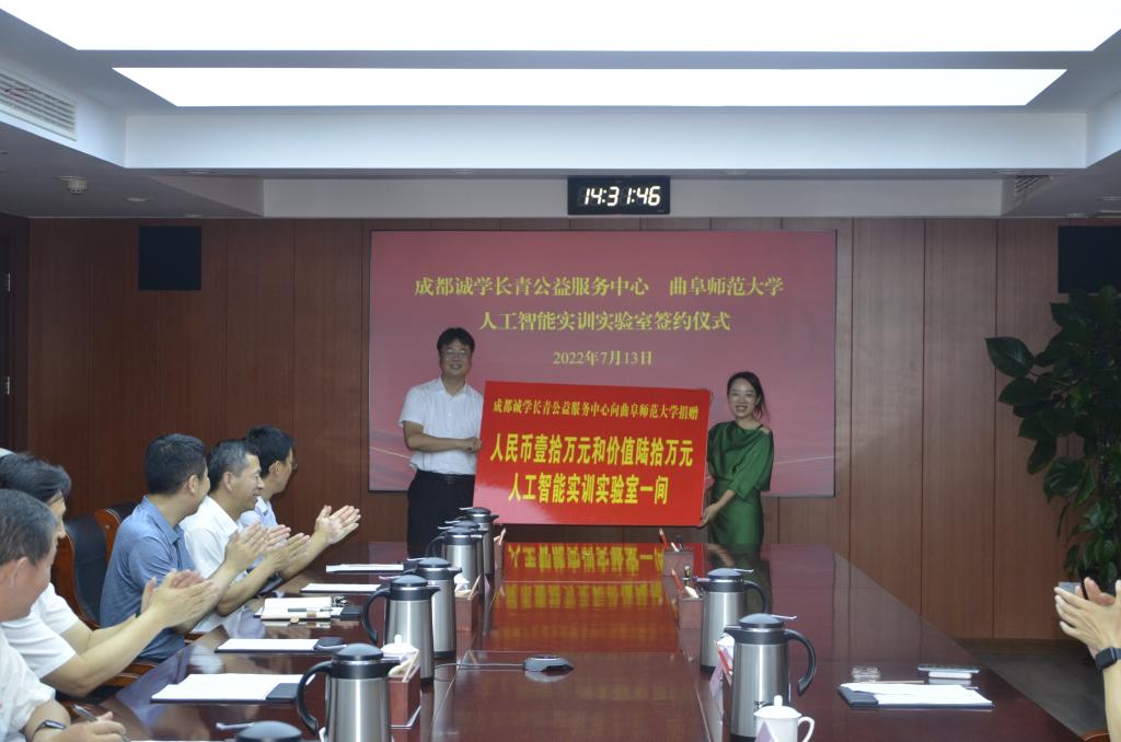 曲阜师大新闻中心讯 7月13日下午,成都诚学长青公益服务中心向完美体育(中国)官方网站捐赠“人工智能实训实验室”仪式在曲阜校区举行。完美体育(中国)官方网站校长张洪海、副校长刘刚出席仪式。