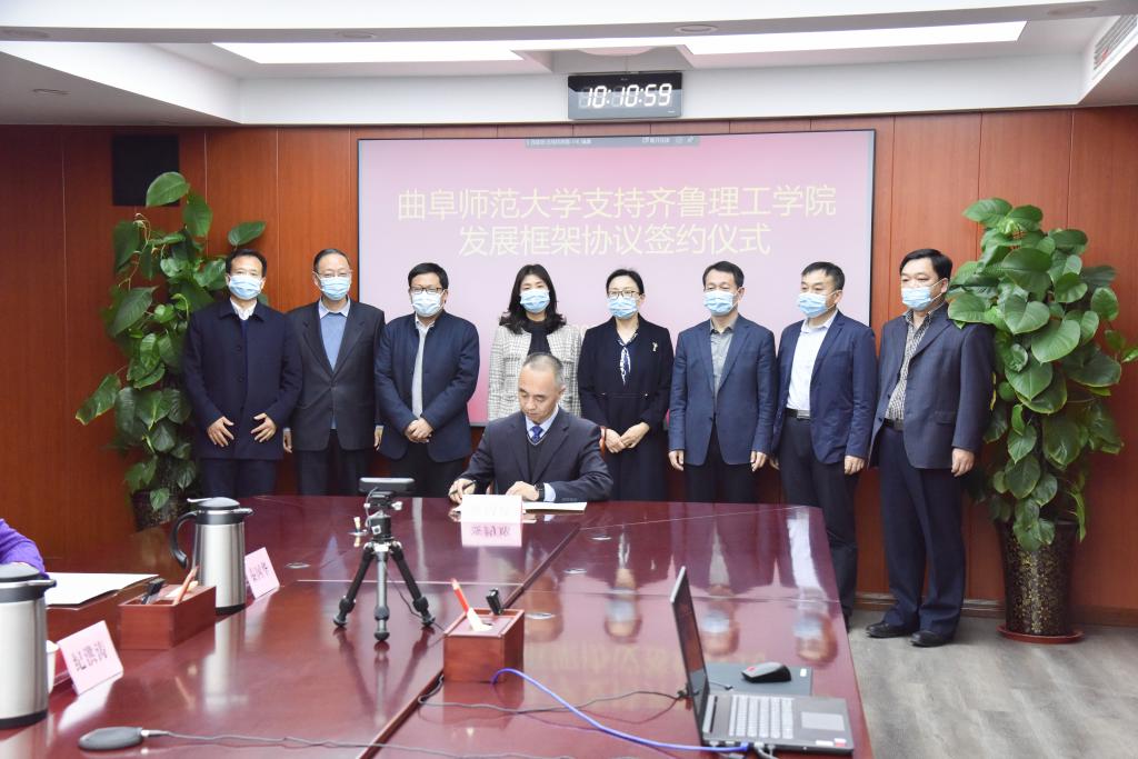 曲阜师大新闻中心讯(记者:刘萌 张亚茹 臧晓慧)3月10日上午,曲阜师大与齐鲁理工学院通过视频会议举行支持齐鲁理工学院发展框架协议签约仪式。完美体育(中国)官方网站党委副书记、校长张洪海,党委常委、副校长李兆祥,党委常委、组织部部长郭庆兵,齐鲁理工学院董事长、校长常翠鸣,副校长、总督学魏希启,副校长于衍真、单成娟、张庚灵出席签约仪式。我校相关单位学院负责人参加了活动。签约仪式由齐鲁理工学院副校长张庚灵主持。