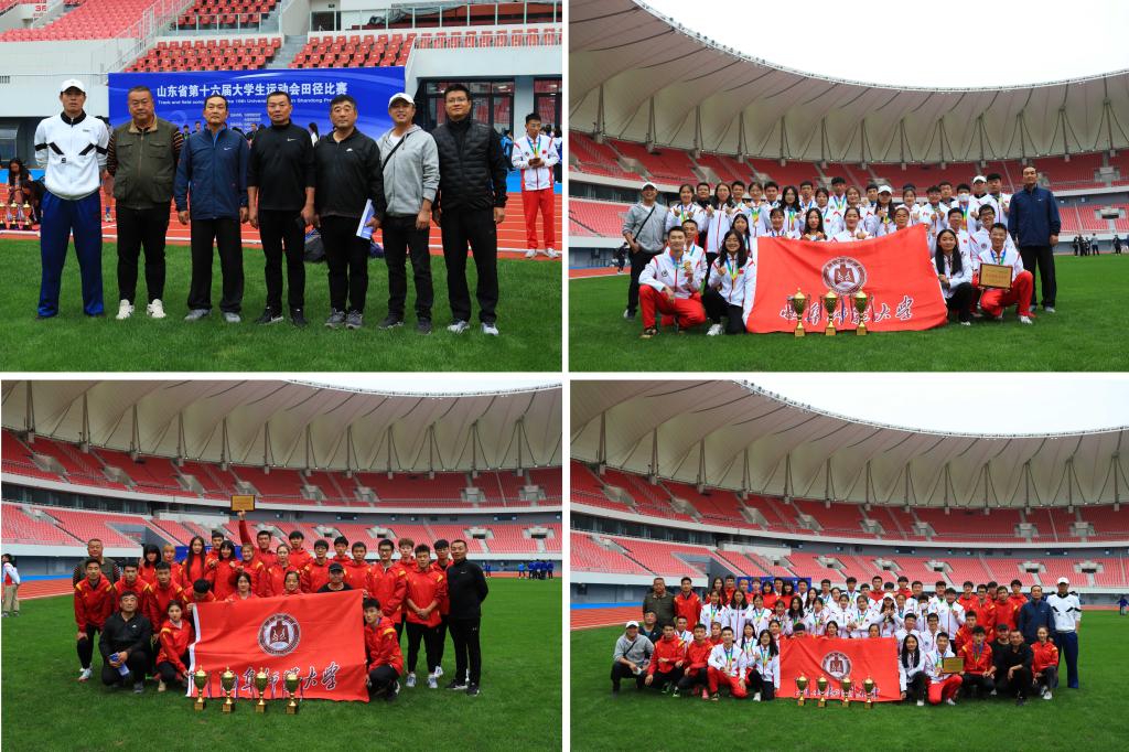 曲阜师大新闻中心讯 10月10日至10月14日,山东省第十六届大学生运动会田径项目在青岛国信体育田径场举行,我校代表队分别参加了甲组(本科普通组)和丙组(体育专业组)两个组别的比赛。经过五天紧张激烈的角逐,我校运动健儿不畏强手,发扬团结一心、顽强拼搏、锐意进取的精神,在比赛中赛出了风格,赛出了水平,共荣获金牌5枚,银牌16枚,铜牌10枚,一举荣获甲组团体总分第一名(甲组男子团体第一名、女子团体第一名)和丙组团体总分第四名(丙组男组团体第四名、女子团体第四名)的好成绩,并荣获体育道德风尚奖,取得了体育竞技和精神文明的双丰收,分别创造了历史最好成绩。