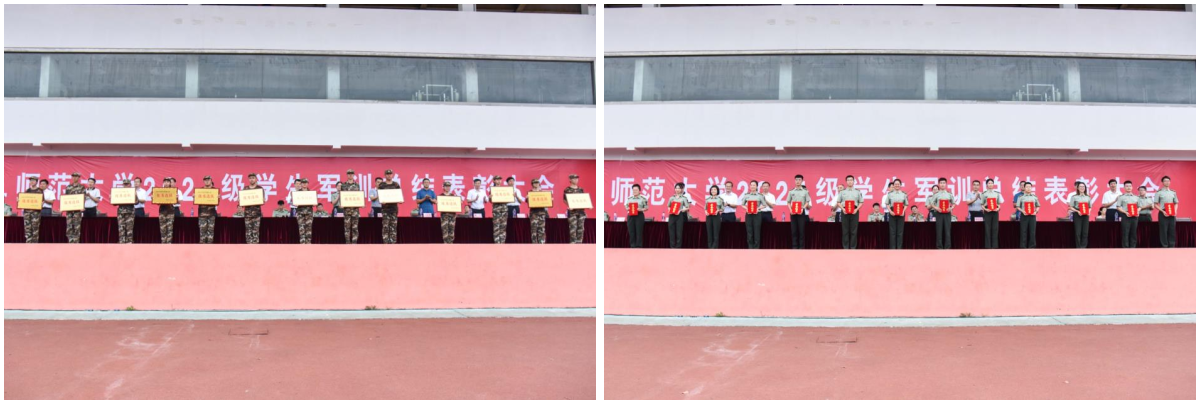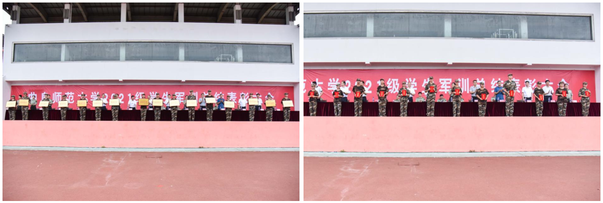 大会还对军训工作优秀单位、优秀连队、军训优秀指导员、优秀教官、优秀标兵等表现突出的集体和个人进行了表彰,在主席台就坐的领导为获表彰的集体和个人颁发了证书和奖牌。