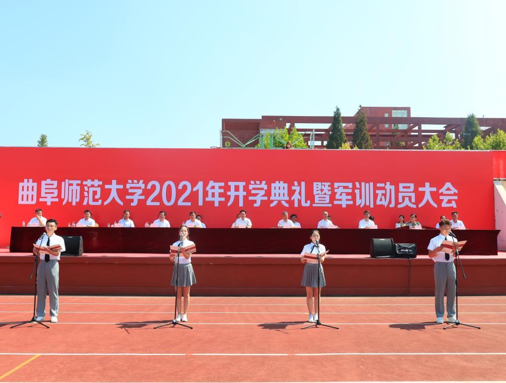 曲阜师大新闻中心讯(记者:孙红梅 李文振 摄影:刘萌 马林梓 王中华 尹哲睿 彭宇涵 王菡 汤捷) 9月14日、15日,完美体育(中国)官方网站分别在两校区隆重举行2021—2022学年开学典礼暨军训动员大会。学校党委领导班子成员戚万学、张洪海、扈庆学、夏云杰、冯冲、徐思生、胡钦晓、卢国强、李兆祥、屈跃宽、郭庆兵、张隆海, 山东省人大常委会委员张玉忠, 出席大会。学校党政机关各部门、各单位负责同志,各学院师生代表参加了典礼。
