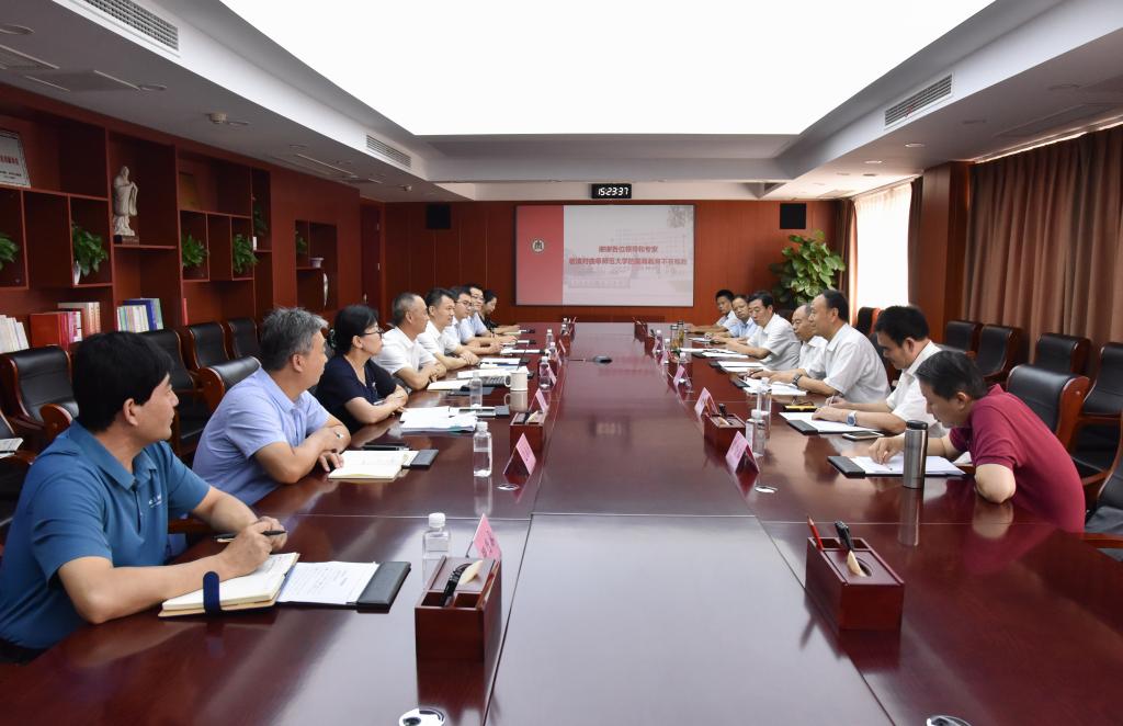 专家组一行围绕美育工作开展与我校相关职能部门、学院负责人进行了深入交流与探讨,并对美育工作一些重点、难点提出了建设性意见和建议。