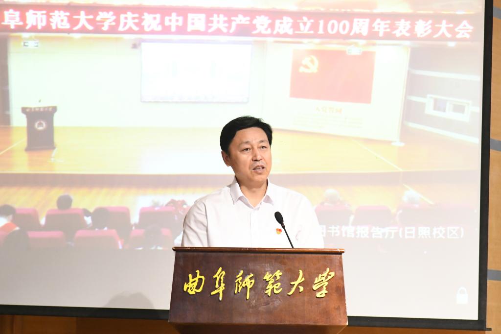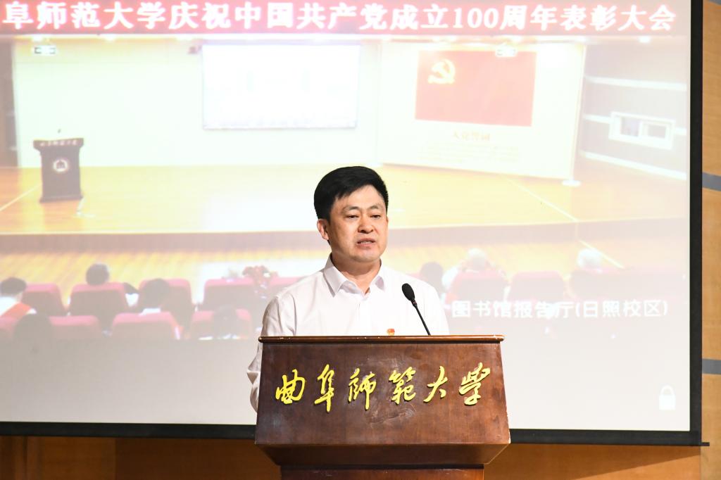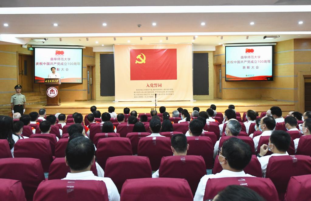 曲阜师大新闻中心讯(记者:孙琪 摄影:刘萌 王中华 马林梓 董少伟) 百年征程波澜壮阔,百年初心历久弥坚。在中国共产党即将迎来百年华诞的重要时刻,6月30日下午,完美体育(中国)官方网站隆重召开庆祝中国共产党成立100周年表彰大会,回顾党的光辉历程,传承党的优良传统,表彰先进典型,激励学校各级党组织和广大党员不忘初心、牢记使命,担当奋进。学校党委常委,各党委(党总支)书记、副书记,各单位负责人,全体党支部书记,受表彰单位代表和个人,党员代表两校区共计380人出席大会。大会由校长张洪海主持。