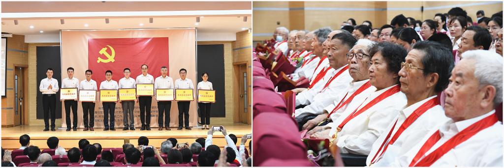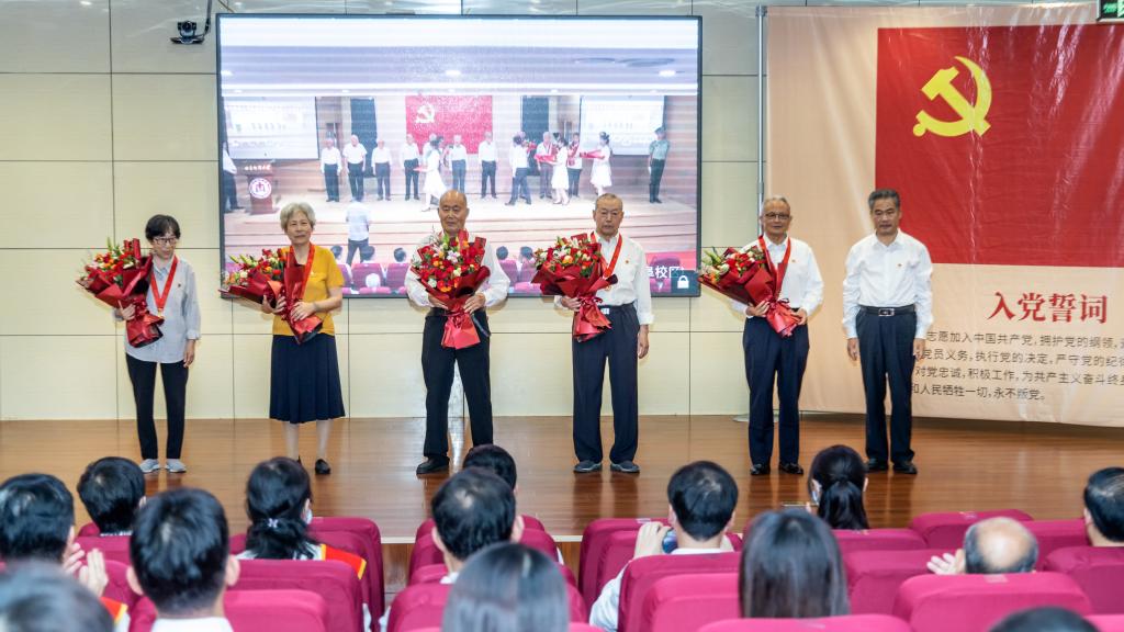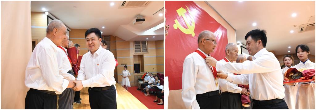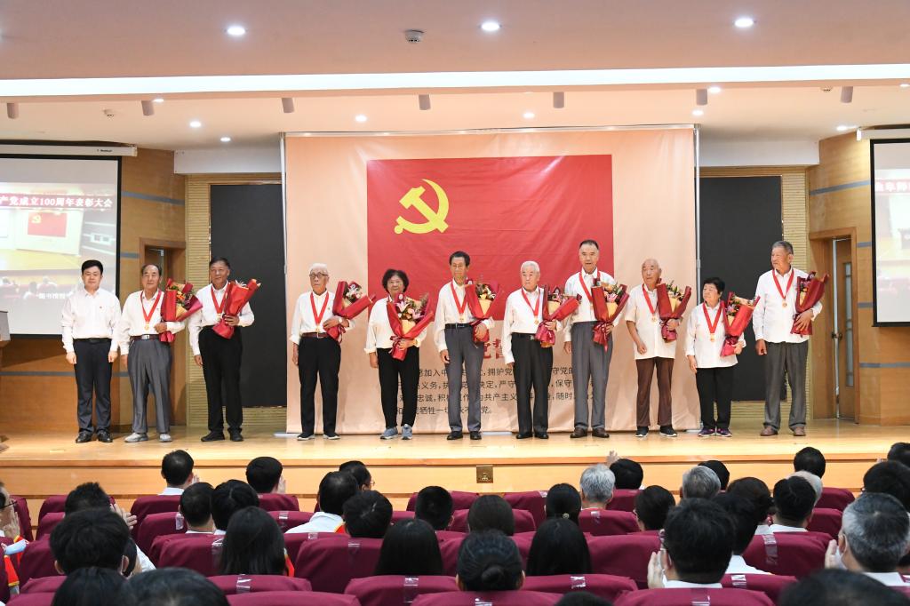今年,党中央决定首次向符合条件的老党员同志颁发“光荣在党50年”纪念章,曲阜师大共有138名老党员获颁纪念章,他们当中党龄最长的为75年。学校领导为到场老党员代表一一颁发“光荣在党50年”纪念章,并献上鲜花,全场掌声雷动,在场师生深受鼓舞,大家纷纷表示要向老党员们学习,坚定理想信念,持守初心、永远奋斗!