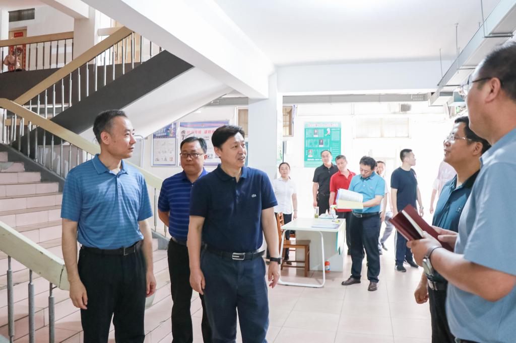 张洪海先后来到学生宿舍、餐厅、实验室等地,实地查看各项安全制度执行与安全责任落实情况,现场听取各部门负责人关于安全隐患排查与整改工作的汇报,详细询问了一线师生关于安全工作的意见和建议,专门就暑期留校师生的安全工作提出要求,并检查了防汛物资储备情况。