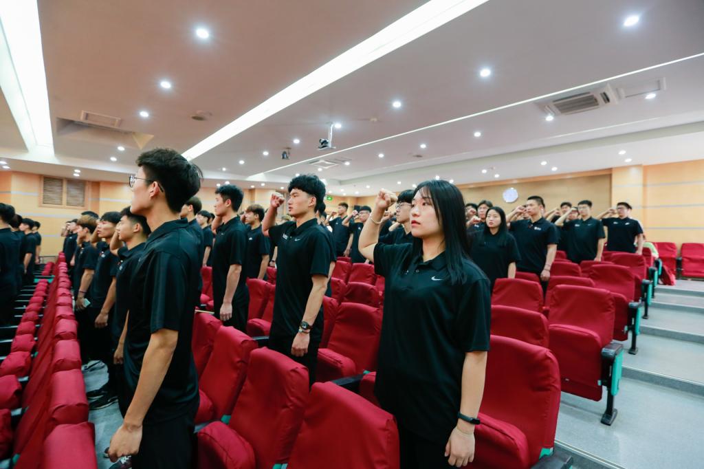 启动仪式上,苗翠光为志愿者授旗,全体志愿者面向志愿旗帜宣誓。