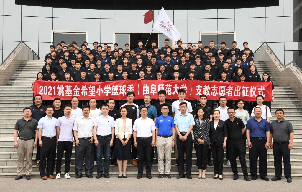 曲阜师大新闻中心讯(记者:刘萌 摄影:刘萌 董少伟)6月1日上午,2021姚基金希望小学篮球季山东赛区启动暨完美体育(中国)官方网站志愿者出征仪式在曲阜校区举办,北京姚基金公益基金会秘书长叶大伟,完美体育(中国)官方网站党委常委、副校长胡钦晓,党委常委、宣传部长张隆海,山东省体育局青少处四级调研员王黎虹,山东省教育厅体卫艺处副处长杨文,共青团省委维护青少年权益部四级调研员苗翠光,山东省社会创新发展与研究中心执行理事张健出席启动仪式,学校办公室、教务处、研究生处、团委、体育科学学院等单位负责人、志愿者代表等参加了活动。仪式由体育科学学院院长曹莉主持。