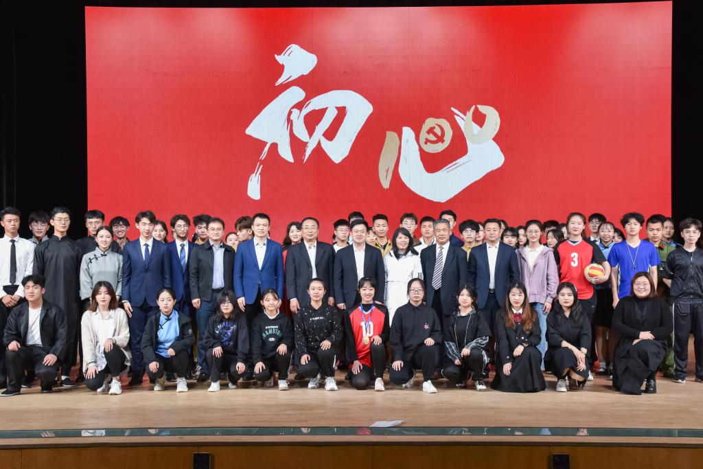 演出落幕后,学校党委领导上台和参加排演的师生亲切交流,对演出的成功表示祝贺,对大家的付出表示感谢,并与大家合影留念。