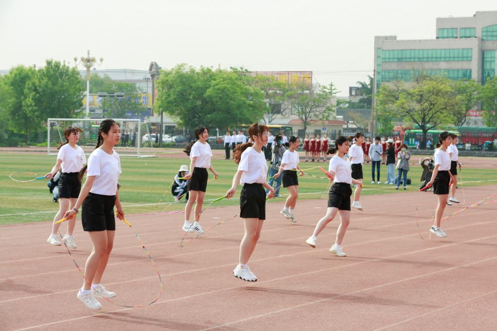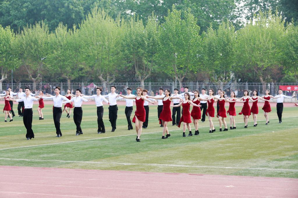 精彩纷呈的学生团体才艺表演将本次运动会开幕式推向高潮。校啦啦操社团和说唱社团联袂出演的劲歌热舞瞬间点燃了全场的气氛;跳绳协会带来的花样跳绳表演活力四射、积极阳光,生动诠释了跳绳运动的独特魅力;体育科学学院学生的拉丁舞表演将不同风格的舞曲有机融合,舞出了青春激情和昂扬精神,馈赠了一场美妙绝伦的视觉盛宴;最后,由来自12个学院的732名学生组成的庞大体操方队展示了第九套广播体操,服装和谐统一,动作整齐有力,把青春的活力带到了操场的每一个角落。同学们以独具特色的节目诠释了对运动精神的理解。