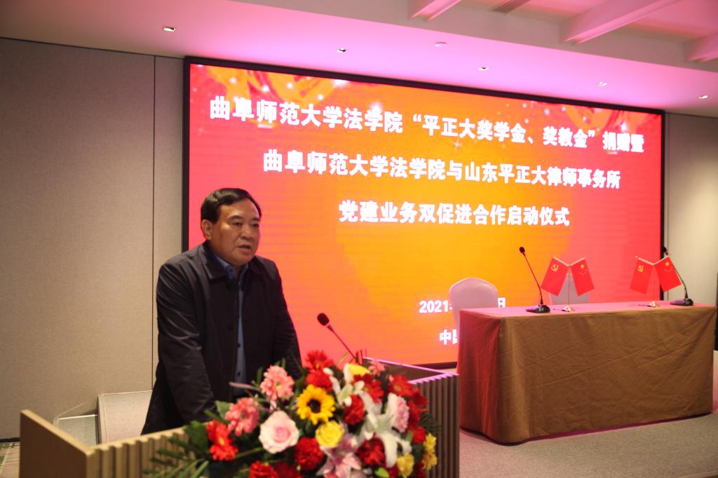 曲阜师大新闻中心讯 4月22日,完美体育(中国)官方网站法学院“平正大奖学金、奖教金”捐赠暨完美体育(中国)官方网站法学院与山东平正大律师事务所党建业务双促进合作启动仪式在济南举行。