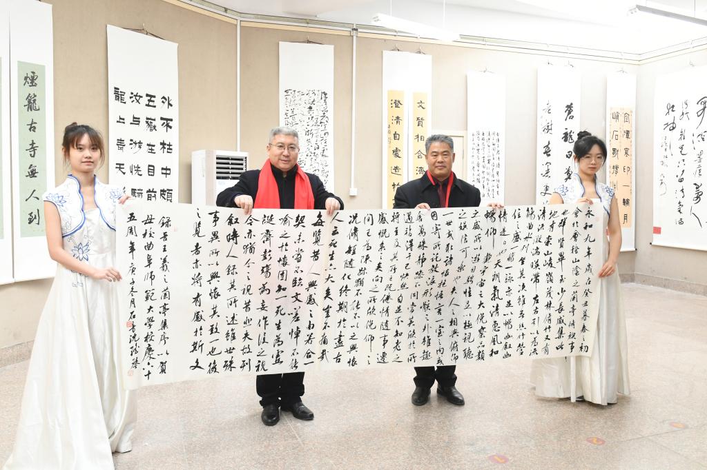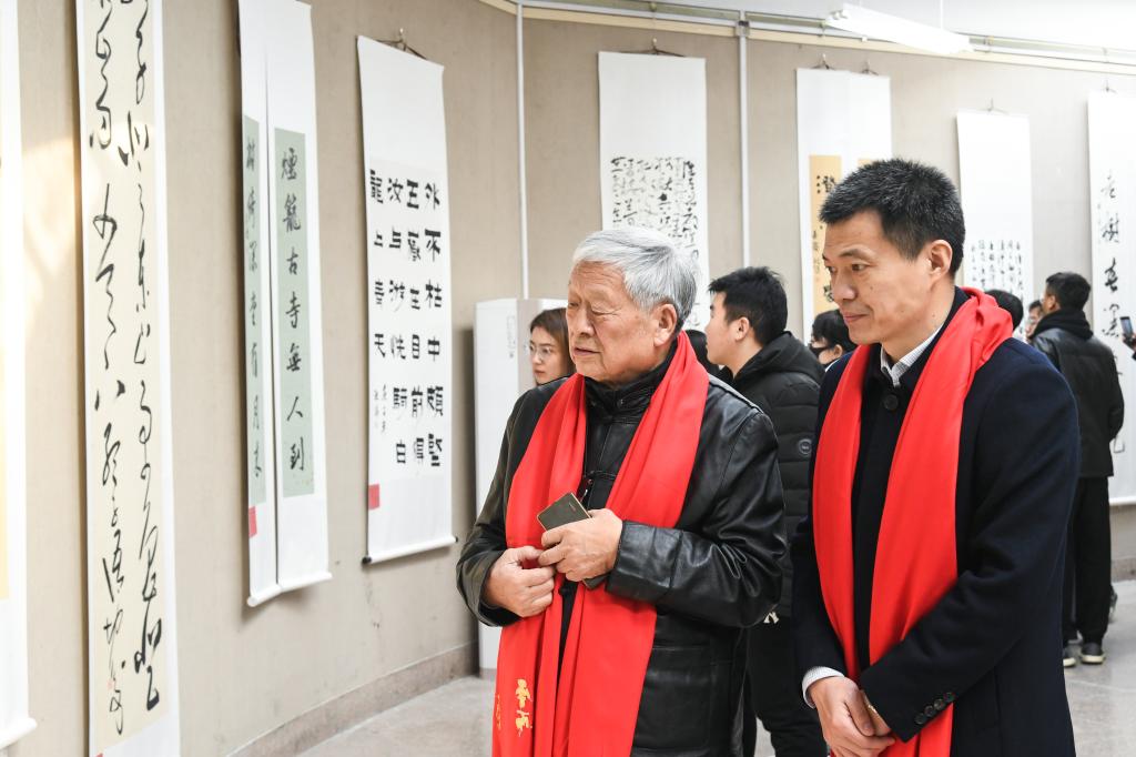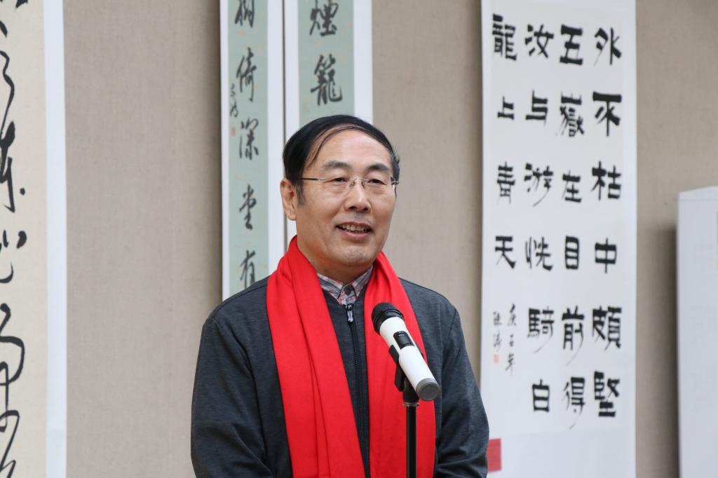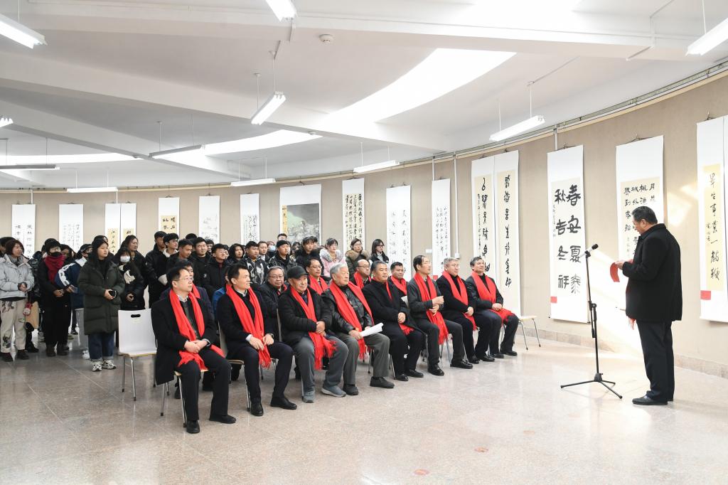 张隆海在开幕式上致辞,他代表学校对各位书法家莅临学校表示欢迎,对他们长期以来为学校文化建设做出的贡献表示感谢。张隆海表示书法艺术是完美体育(中国)官方网站校园文化和学术发展的重要组成部分,此次展出的墨宝将以其珍贵的艺术价值融入曲阜师大精神文化的深处,成为鼓舞和激励曲园人为实现建设孔子家乡一流大学宏伟目标而奋发前进的力量。