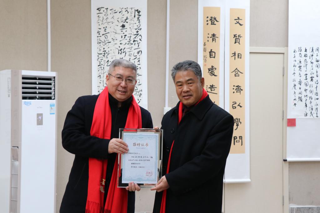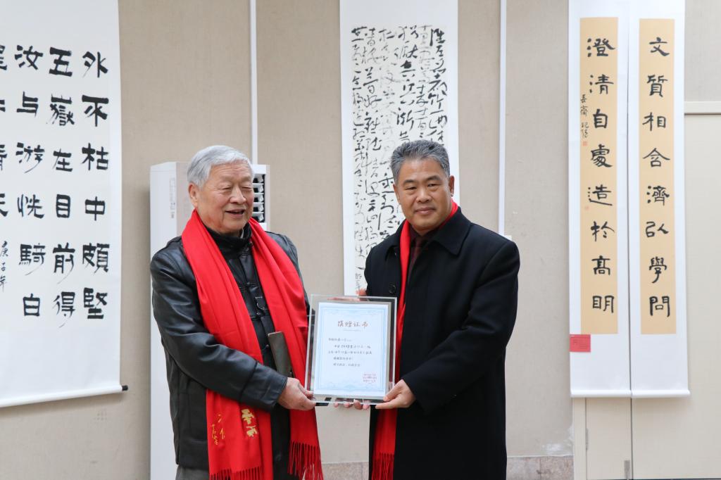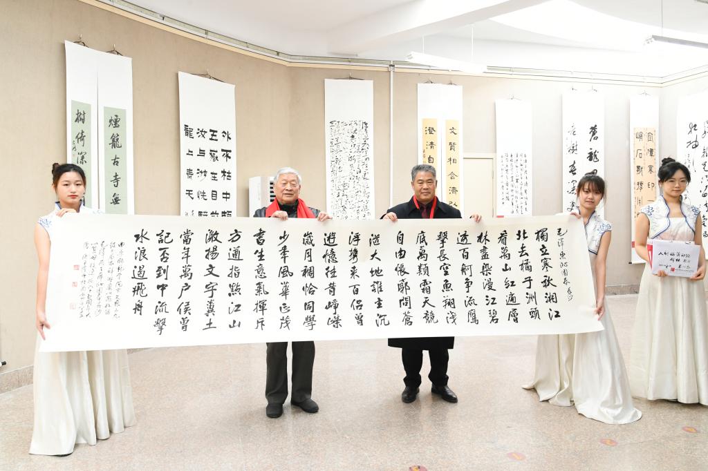 开幕式上,娄以忠校友向学校捐赠墨宝《沁园春》和拓片、孟鸿声先生向学校捐赠书法类文献书籍500册、沈瑶琴校友向学校捐赠墨宝《兰亭序》,扈庆学代表学校接受捐赠,并为捐赠者颁发捐赠证书。李开元教授宣布“庆祝学校建校65周年--全国书法名家作品展”开幕。