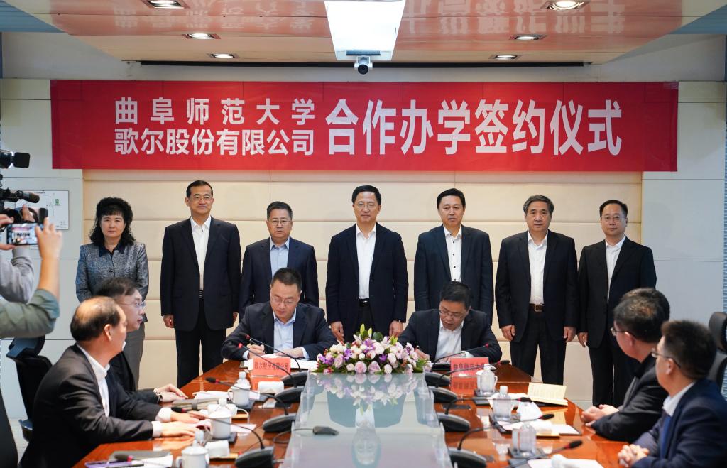 仪式上,胡钦晓与歌尔股份有限公司高级副总裁蒋洪寨,分别代表校企双方签订了合作办学协议。根据协议,曲阜师大将与歌尔公司共建“完美体育(中国)官方网站歌尔工学院”,并将在协同育人、共建专业、模式创新等方面开展全面合作,构建面向未来的工程科技拔尖创新人才培养体系,培养输送适应经济社会发展和产业升级转型所需的实用型制造工程师。