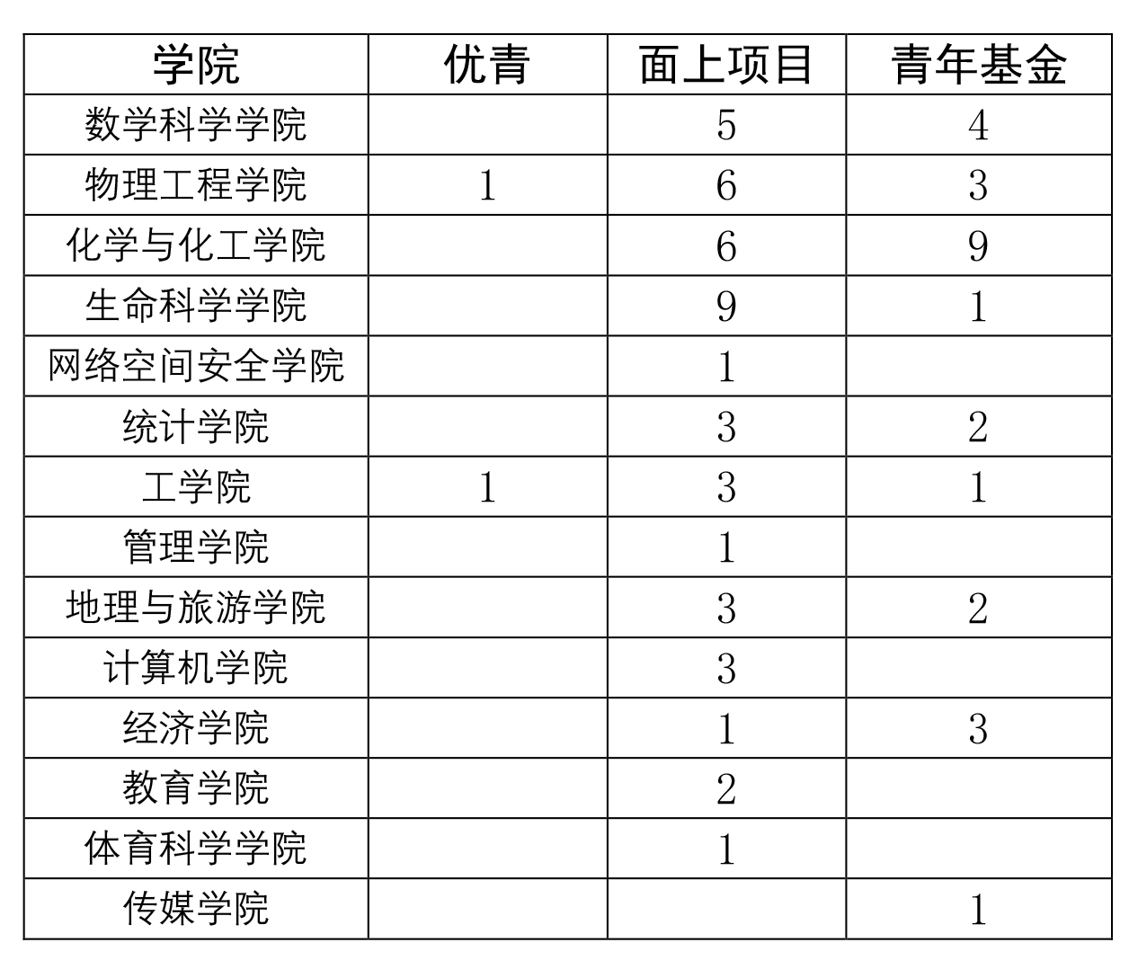 各学院省基金项目立项数