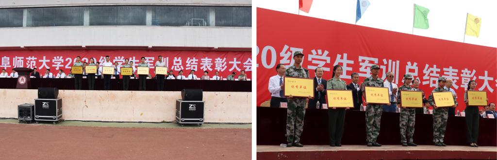大会对军训工作中表现突出的集体和个人进行了表彰,学生工作处处长、武装部部长、军训旅副旅长兼参谋长姜美颖宣读了获奖名单,在主席台就坐的领导为获表彰的集体和个人颁发了证书和奖牌。