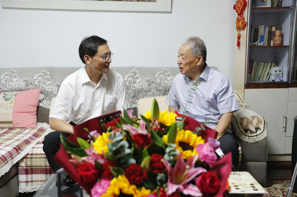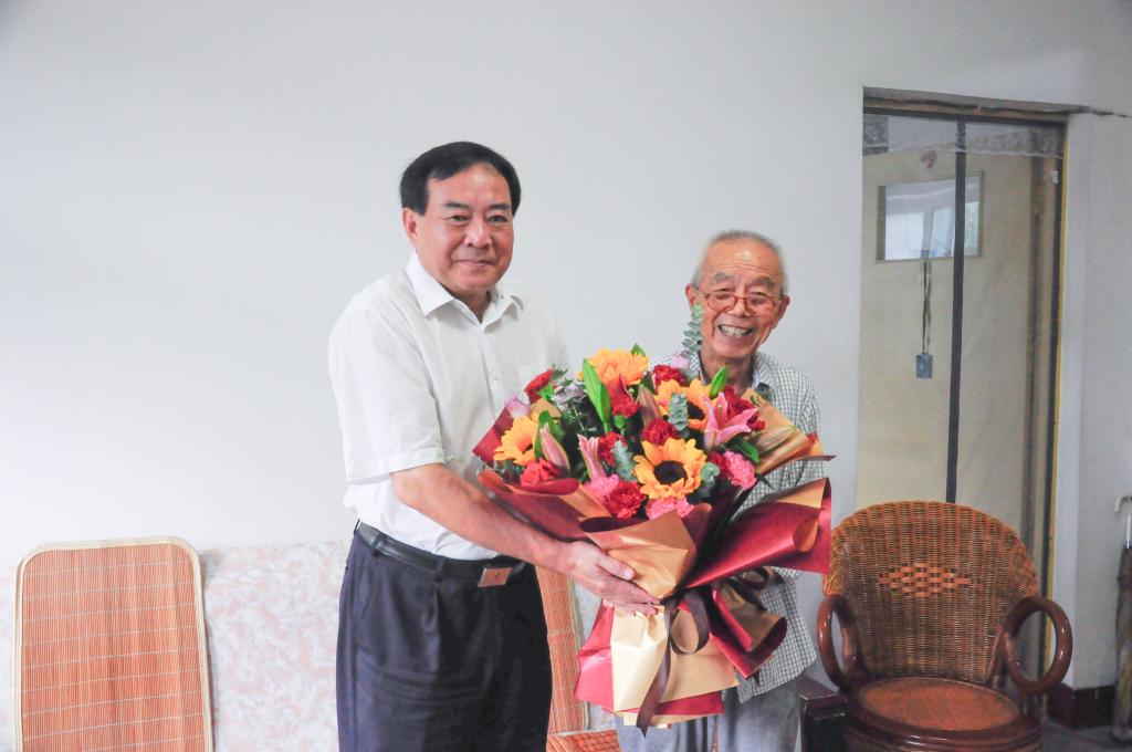 学校党委常委、副校长夏云杰看望慰问退休教师代表章志敏老师。