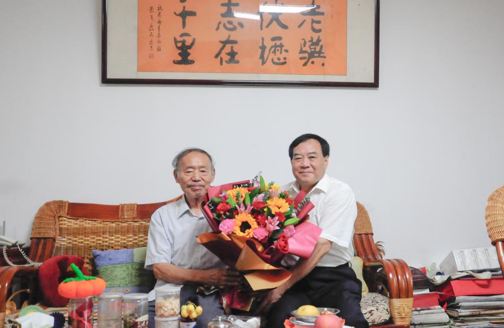 学校党委常委、副校长冯冲看望慰问退休教师代表骆承烈老师。