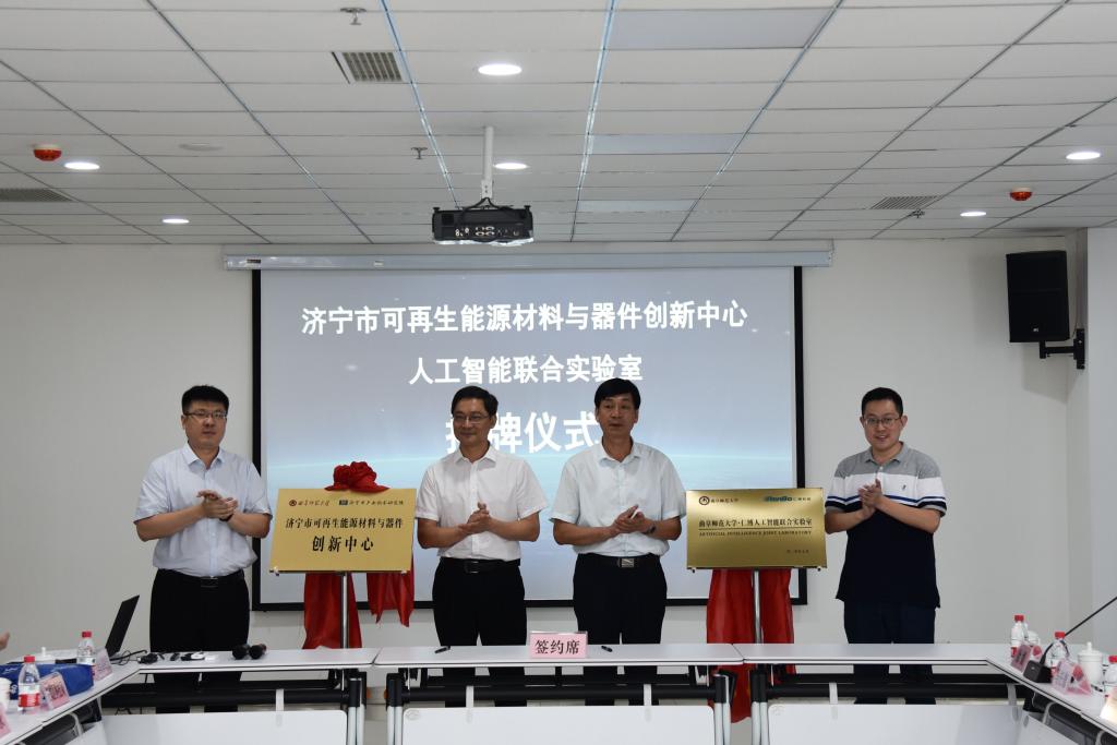会上,参会领导为“济宁市可再生能源材料与器件创新中心”揭牌,济宁市为该中心资助50万元。曲阜师大软件学院和山东仁博信息科技股份有限公司签订人工智能联合实验室共建协议,并为“人工智能联合实验室”揭牌,山东仁博信息科技股份有限公司将为“人工智能联合实验室”资助100万元。