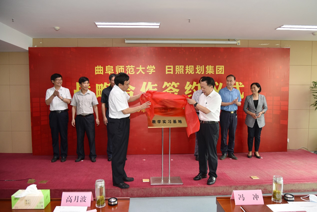 仪式上,冯冲和高月波共同为曲阜师大实践教学基地揭牌;曲阜师大地理与旅游学院院长张全景、日照规划集团董事长郑英,代表双方签订战略合作协议。