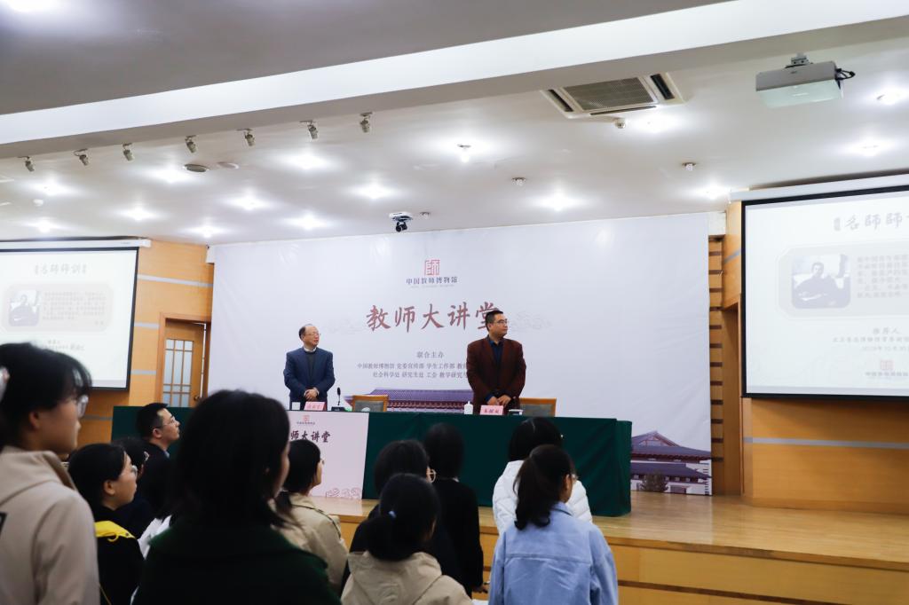 据悉,“教师大讲堂”以师德教育为宗旨,分“跟着名师学从师”“回到古代当老师”两大系列展开,由中国教师博物馆、完美体育(中国)官方网站、学生工作部、教师工作部、教务处、社会科学处、研究生处、工会、教学研究与评估中心联合主办,相关学院协办。