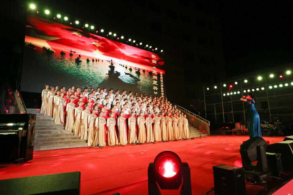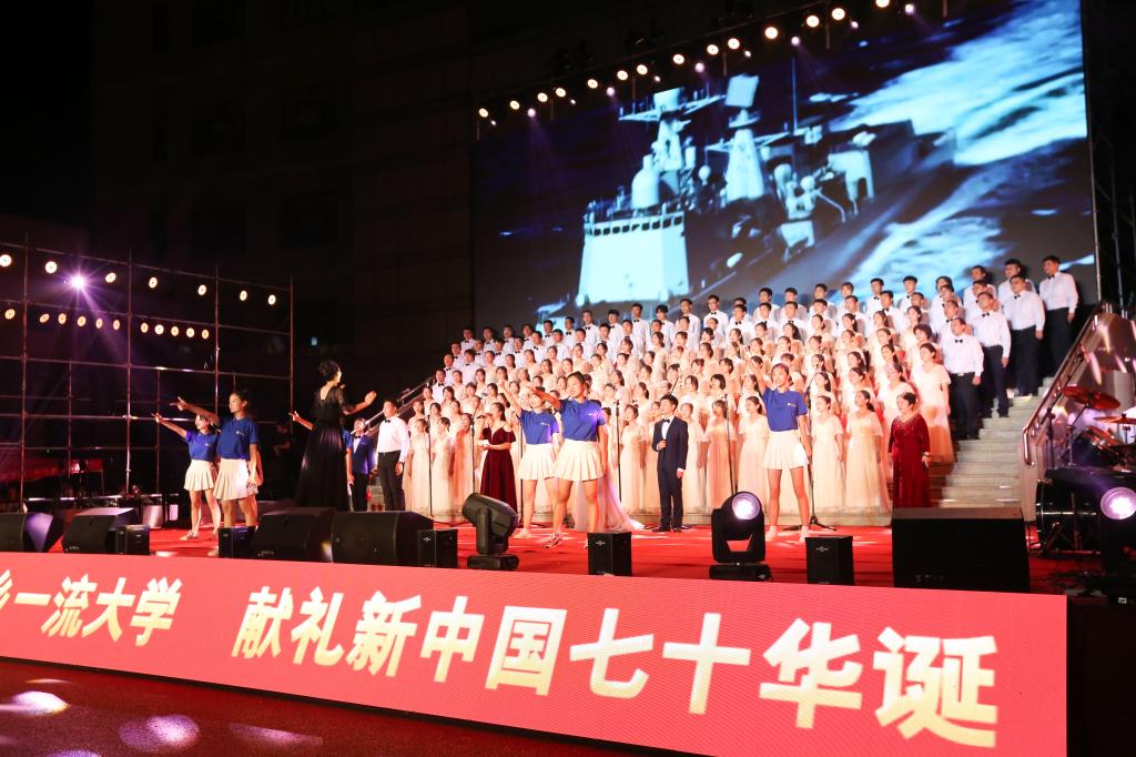 “我们走在大路上,意气风发斗志昂扬……”演出结束后,很多师生在回去的路上仍会情不自禁哼唱起一支支经典曲目。爱国情、奋斗志在动人旋律中萦绕耳旁,更弥漫心间。