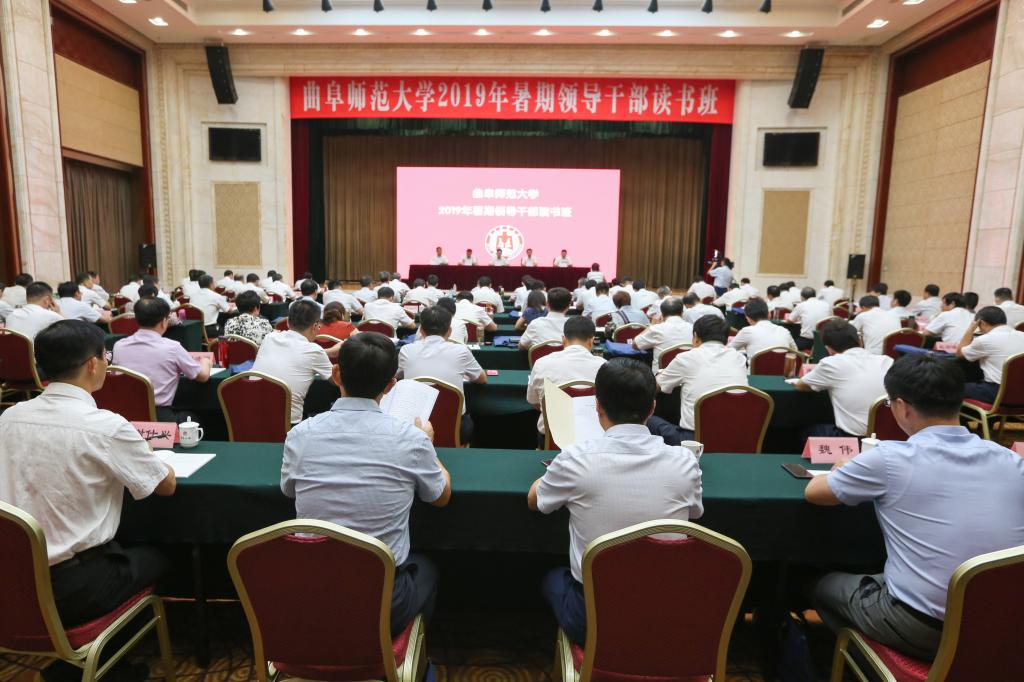 8月21日上午,我校2019年暑期领导干部读书班在邹城干部政德教育基地开班。开班仪式上,学校党委书记戚万学、校长张洪海,党委副书记扈庆学,邹城市委副书记龙万华,在主席台就坐。学校党委委员、纪委委员,各单位、各部门主要负责人和正处级以上干部,参加本次读书班活动。开班仪式由扈庆学主持。