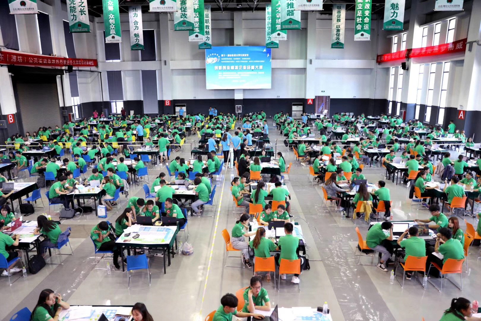 本次大赛由山东省教育厅、共青团省委等部门联合主办,大赛采用“新商战平台”作为比赛系统,要求参赛选手根据赛题要求,在规定的时间内,现场模拟企业六年的运营状态,内容涉及企业整体战略、产品研发、设备投资改造、生产能力规划与排程、物料需求计划、资金需求规划、市场与销售、财务经济指标分析及团队沟通与建设等多个方面。学生在比赛中实地体验商业竞争的激烈性,激发其创新协作能力,锻炼其全局观念及规划能力。