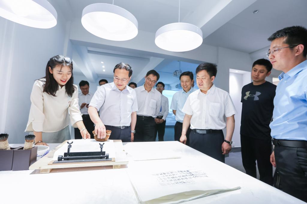 在我校儒学研究成果展厅,于杰参观了文脉悠长、硕儒云集、守正创新、交流互鉴、以文化人等五个板块的内容,全面了解了我校扎根孔子故里、践行“两创”方针、建设儒学高地的系列举措与成就。于杰现场翻阅了我校专家学者编著的《中国儒学史》《孔子博物馆藏孔府档案汇编·明代卷》等儒学研究的代表性成果,不时提问我校哲学社会科学的建设发展情况。他强调,建设儒学研究高地必须凝练特色、凸显优势,要深入挖掘孔府档案等历史文化资源,加强数字化建设,用好互联网平台;要积极开展“两创”成果的对外翻译与传播,助推中华文化走出去;要抓好人才队伍建设特别是领军型人才的引培工作,产出支撑性和代表性成果。