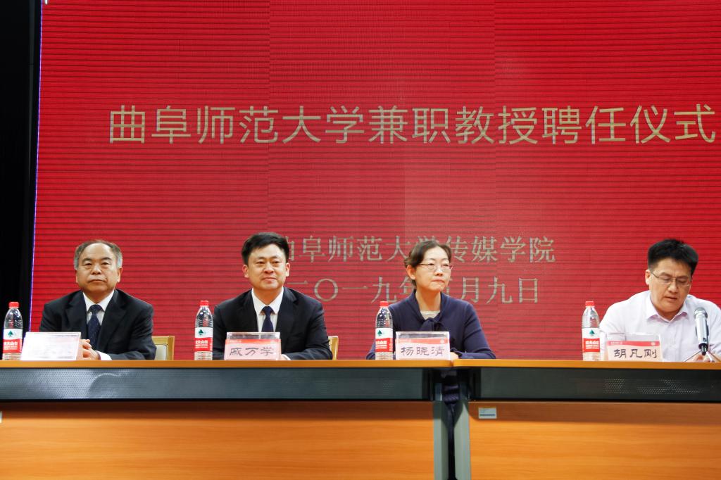 5月9日下午,中央电视台著名导演杨晓清受聘我校兼职教授,党委书记戚万学为杨晓清导演颁发聘书。我校博士生导师傅永聚教授、日照校区管理办公室主任孔令军、传媒学院院长胡凡刚以及学院师生代表参加聘任仪式。