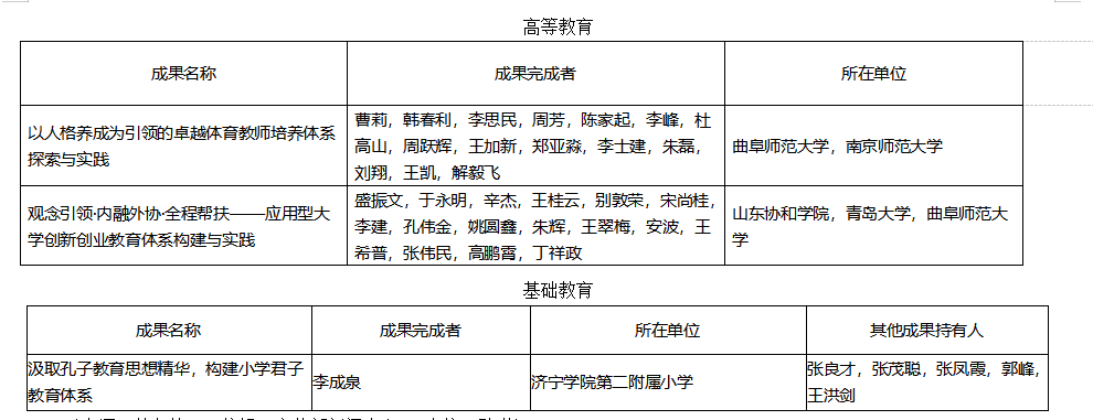 近年来,学校认真贯彻习近平总书记系列重要讲话精神,坚持立德树人和以文化人的教育理念,立足本科教育,将创新创业教育融入人才培养全过程,修订完善人才培养方案,优化基础课程和专业核心课程建设,改革课堂教学模式,坚持“向课堂要质量”,促进通识教育与专业教育渗透衔接、全面发展与个性成长有效结合;充分发挥教师教育和传统文化研究的特色优势,秉承“学而不厌,诲人不倦”的校训,培养扎根中国大地的人民教师,坚持“向师范要品牌”,在历届山东省师范生从业技能大赛和山东省青年教师教学比赛中屡获佳绩;完善《教学建设成果奖励与资助管理办法》,以政策为引导,鼓励广大教师积极开展教育教学研究与实践,更新教育理念,大力推进教师教育改革创新,坚持“向评价要效益”,本科教育教学成果斐然。这次国家教学成果奖评选的新突破,正是对我校践行新时代高等教育内涵式发展理念和落实新时代全国高等学校本科教育工作会议精神的一次高标准检阅!