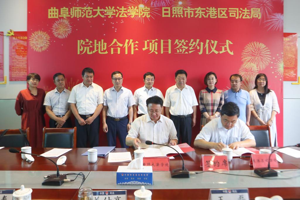 6月19日上午,我校法学院与日照市东港区司法局举行“院地合作”签约仪式。法学院党委书记曹明亮、院长张益刚,日照市司法局局长张桂伟、副局长刘书荣,东港区政法委书记王磊、区委宣传部副部长郭长亮、区委组织部副部长安玉春、区财政局局长刘利明、区司法局局长彭基岭、区社区管理局局长王进升,出席签约仪式。仪式由东港区副区长姜付高主持。