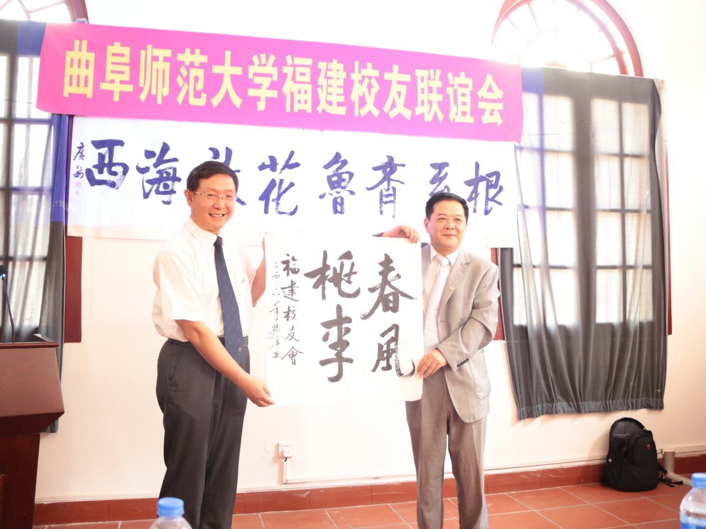 仪式上,扈庆学向福建校友会授牌并代表学校向校友会成立表示祝贺,向辛勤付出的福建校友会筹备组表示感谢。扈庆学以“改革争先、创新发展、砥砺奋进、共建孔子家乡一流大学”为主题向校友们介绍了学校近期建设发展以及取得的成绩,高度评价了广大在闽校友为地方经济建设和社会发展做出的重要贡献,希望福建校友继续秉承“艰苦奋斗、刚健自强”的曲师精神和“爱国爱乡、海纳百川、乐善好施、敢拼会赢”的福建精神积极投身八闽建设,将校友会建设成为全体福建校友的美好精神家园和资源共享平台,促进母校与福建地区的产学研合作、人才引进工作。
