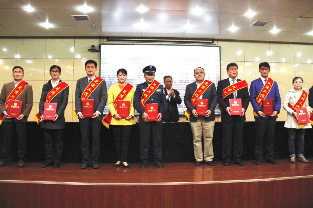 与会领导为受表彰的先进集体、先进工作者颁发了奖牌和证书。