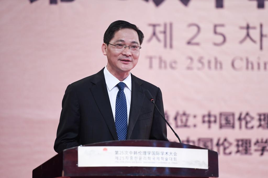 卫建国在致辞中向山东省伦理学会和完美体育(中国)官方网站对大会召开给予的鼎力支持表示衷心感谢。他表示,中韩伦理学国际学术大会历史久、规格高、影响大、备受关注。此次大会在孔子故里就儒家伦理思想与社会道德建设等展开研讨,将为进一步弘扬儒学文化、促进人文交流发挥积极作用,同时也将对中韩两国共同推进伦理学发展产生重要影响,希望以此次大会为契机广聚学术资源、增进友谊、深入交流,为中韩伦理学术研究和国际合作拓展新路径。