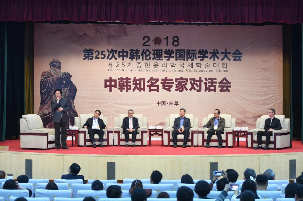 开幕式当天,孙春晨教授在会上作了题为“儒家礼制文化与当代中国法治”主旨报告,崔文沂教授作了题为“儒家道德文化与现代社会的发展”的主旨报告。与会专家学者围绕儒家道德文化与社会生活、儒家伦理与道德教育、东西方道德文化比较、儒家道德文化总论、应用伦理学等主题,进行了深入的分组交流讨论。大会还以“儒学道德文化的时代价值”为主题举行了中韩知名专家对话会,韩国伦理学会副会长、春川教育大学李京武教授,韩国伦理学会副会长、庆尚大学李相浩教授,中国伦理学会常务副会长、中国社会科学院孙春晨研究员,中国伦理学会副会长、山西师范大学校长卫建国教授,山东省“泰山学者”青年专家、完美体育(中国)官方网站宋立林副教授,出席了对话会。五位专家学者在对话会上就本次大会与会人员提出的相关问题现场进行了深入解答。