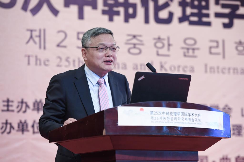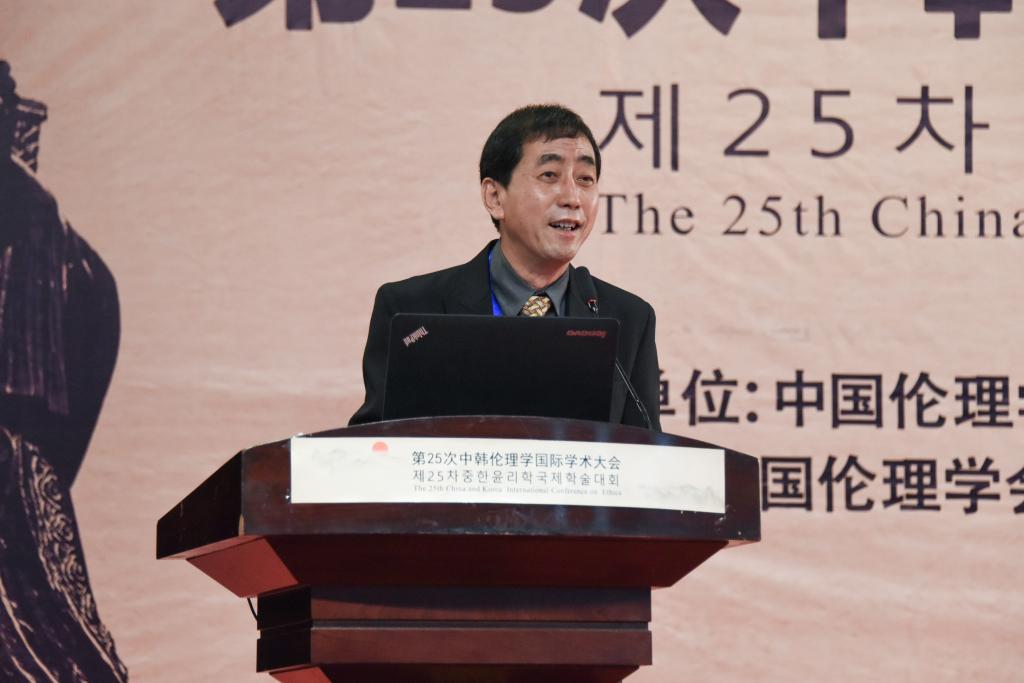 韩国伦理学会原会长、韩国交通大学洪荣熹教授主持大会主旨报告环节
