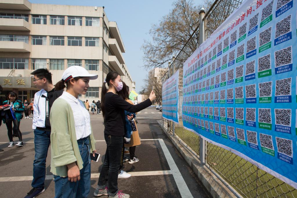 增设网络视频招聘形式、现场开辟“二维码墙”等创新举措让招聘会“新”意十足、彰显“互联网+”特色。招聘会在我校中国教育大数据研究院开设了网络视频招聘分会场,方便有需要的招聘单位与求职者通过线上平台完成视频面试,有助于突破地域限制和场地限制,有效降低聘、求双方的经济成本和时间成本,提高了招聘工作效率和就业信息化水平,更有利于为山东省新旧动能转换提供跨区域人才服务。同时,招聘会还在现场设置了“二维码墙”,应聘学生一键扫码即可了解相应招聘信息并投递简历,让招聘过程更加简易。