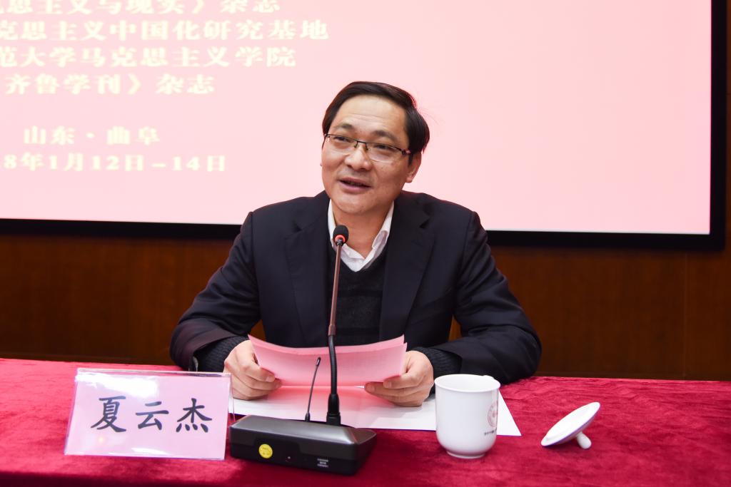 夏云杰在开幕致辞中对本次论坛的召开表示热烈祝贺,向与会的各位领导和专家表示诚挚欢迎,简要介绍了我校的办学历史和学科建设等发展成就。夏云杰表示,我校历来重视人文社会科学的建设,多年来坚持依托孔孟故里历史文化资源和深厚人文底蕴,注重中华优秀传统文化传承创新与马克思主义中国化普及阐释的有机结合,形成了鲜明的特色和优势。他指出,习近平新时代中国特色社会主义思想是马克思主义中国化的最新成果,有着无比丰富的内涵。此次论坛围绕习近平新时代中国特色社会主义思想展开研讨,具有十分重要的理论意义和现实价值,将进一步推动习近平新时代中国特色社会主义思想研究,为促进马克思主义理论学科的发展做出积极贡献。