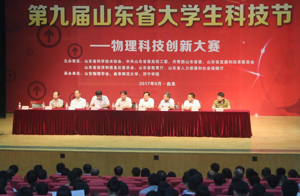 日前,山东省第九届大学生科技节——物理科技创新大赛在我校举行。此次大赛由山东省科学技术协会、中共山东省委高校工委、共青团山东省委、山东省发展和改革委员会、山东省经济和信息化委员会、山东省教育厅、山东省人力资源和社会保障厅主办,山东物理学会、完美体育(中国)官方网站和济宁学院承办。我校副校长冯冲,山东物理学会副理事长兼秘书长张承琚教授出席大赛开幕式,来自全省30所高校的教师、参赛选手以及我校相关部门负责人、物理工程学院师生代表参加了开幕式。