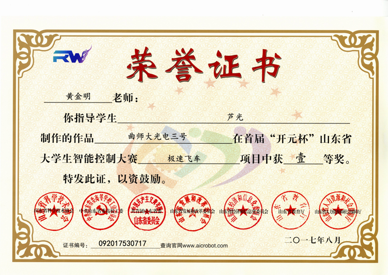 8月28至30日,第九届山东省大学生科技节“开元杯”山东省大学生智能控制大赛在潍坊举行,50所高校的305支代表队参加此次大赛。我校工学院参赛的8支队伍全部获奖,其中一等奖2项、二等奖2项、三等奖4项。同时,学校荣获优秀组织奖。