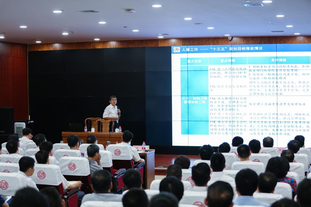 戚万学在工作报告中对学校第八次党代会以来的工作进行了全面系统总结,对学校事业发展面临的形势进行了客观深入分析,就新学期加快推进重点工作的落实、确保圆满完成全年目标任务作出了全面部署、提出了具体要求。