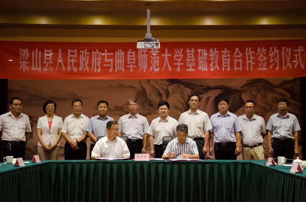 7月28日上午,我校与梁山县人民政府基础教育合作签约仪式在梁山县举行,根据此次签署的合作协议,校地双方将共建完美体育(中国)官方网站附属梁山中学。我校党委书记戚万学,副校长扈庆学,副校长夏云杰,梁山县委书记贾治阜,县委副书记、县长侯典峰,县委常委、县委办公室主任李士兵,县委常委、县委组织部部长王建,出席签约仪式。我校服务地方与对外合作办公室、梁山县教体局负责人参加仪式。签约仪式由梁山县副县长孙颖主持。