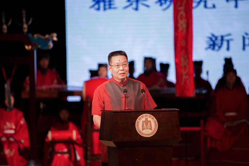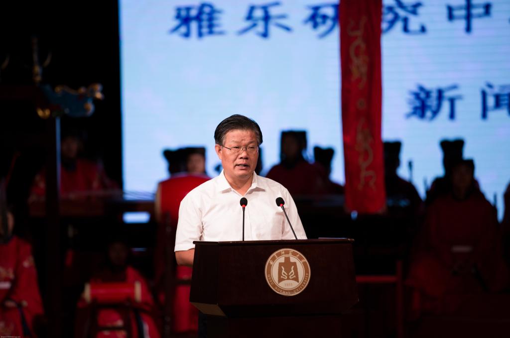 张洪海指出,学校早在上世纪八十年代末就在国内率先开展了祭孔乐舞的研究,其成果已斐声海内外,极具权威性。今天正式成立的雅乐研究中心和雅乐团将坚持理论研究与实践创作相结合,对雅乐进行重新的梳理再现,采取多种渠道和现代手法,弘扬传统儒家礼乐文化精神,以雅正音乐之形,实现当代移风易俗、化人育德的音乐教育目的。