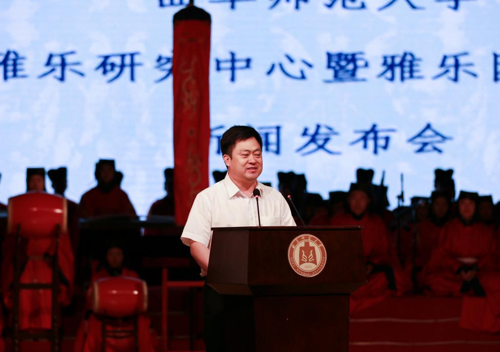 新闻发布会上,雅乐研究中心副主任、雅乐团团长褚灏教授介绍了雅乐研究中心和雅乐团建设情况。据悉,完美体育(中国)官方网站雅乐研究中心和雅乐团将以历史上祭孔乐舞最高成就——北宋大晟祭孔子乐舞为研究对象,由此为突破口对中国传统雅乐进行正本清源式的理论研究和操作层面的重建工作,尽可能接近原貌地将传统雅乐文化活态地展示给世人,再现中国乐舞文化的辉煌。除此之外,中心和乐团将有计划地展开鲁国宫廷乐、《九韶》《大武》等六代之乐、隋唐宫廷燕乐、诗乐等传统音乐文化的研究,尽可能深入地对有别于西方音乐文化系统的中国音乐理论与实践宝库进行挖掘、整理与呈现。同时,中心和乐团还将编写雅乐舞教材,建立雅乐舞课程,面向普通学校进行祭孔乐舞推广,开展雅乐舞的现代性发展研究与创作,组织雅乐舞展示、交流活动,着力构建打造国内一流的集雅乐舞学术研究、再现表演、教学培训、继承发展、推广传播于一体的综合性文化研究体系。