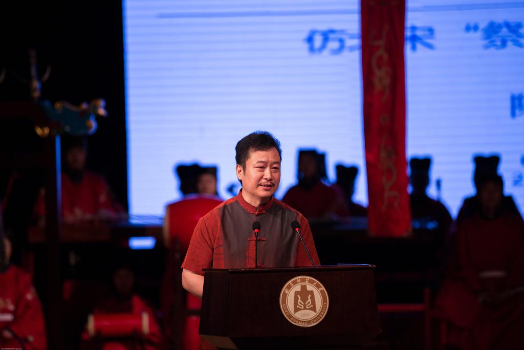 张洪海强调,学校组建的雅乐团是国内目前唯一的“八音”乐器最齐全、乐器及服装制作最考究、队伍最庞大的仿北宋祭孔乐团。乐团把“闻乐知德,观舞澄心,识礼明仁”作为表演的最高追求,将努力在动人的乐舞中彰显儒家礼乐教化的精髓,再现雅乐文化的无穷魅力。