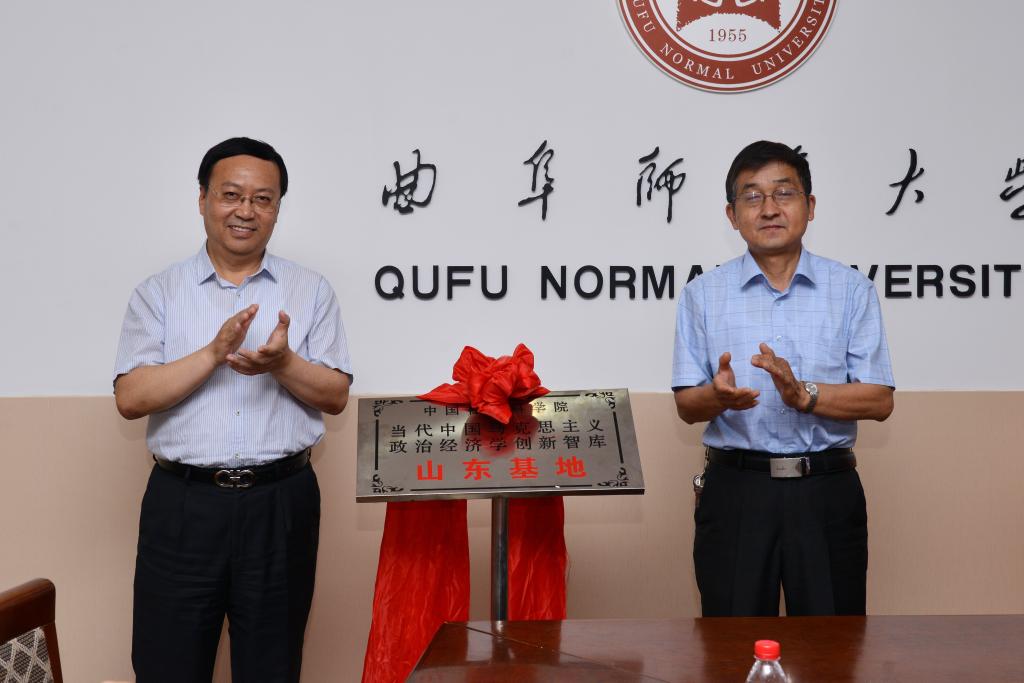 随后,高培勇、王继锁共同为“当代中国马克思主义政治经济学创新智库山东基地”揭牌,王立胜、《中国社会科学》编审许建康共同为完美体育(中国)官方网站“中国特色社会主义政治经济学研究中心”揭牌。